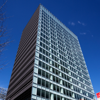 全面ガラス張りの解放感あふれるビルの中にある大阪校。