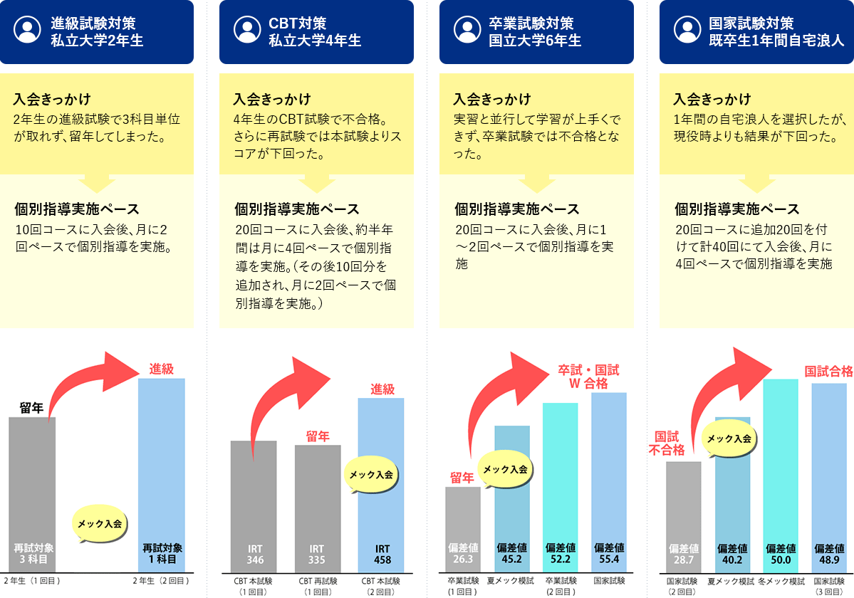 オーダーメイドの学習カリキュラムと各種試験の成績分析や予備校マイページを使用した指導記録の作成。