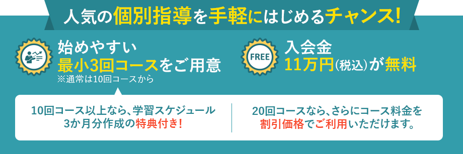 スケジュールを組み立て専任講師によるマンツーマン指導で効果的に対策し結果に繋げます。