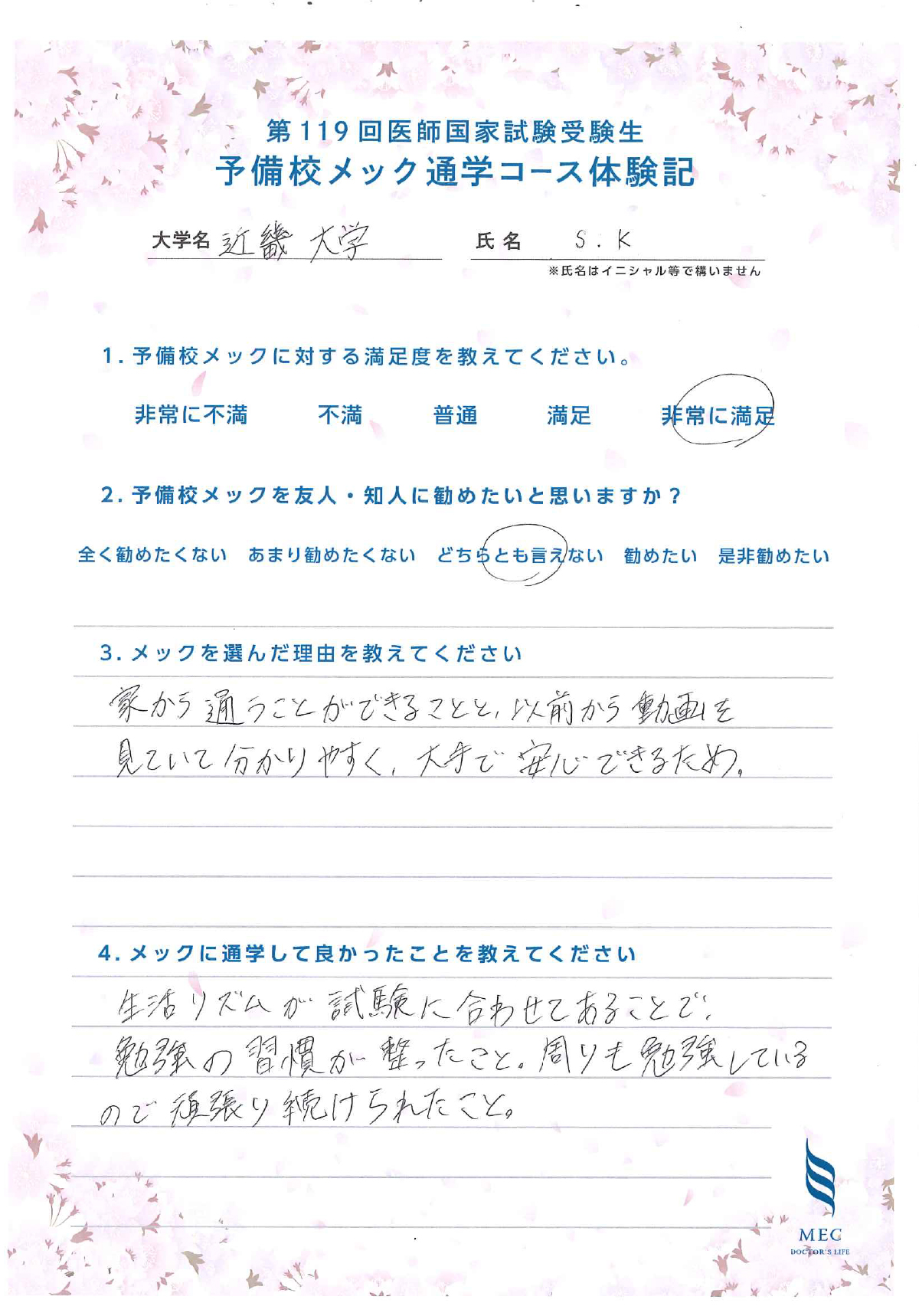 メックの生活リズムは国試に合わせてあるので、勉強の習慣が整いました。