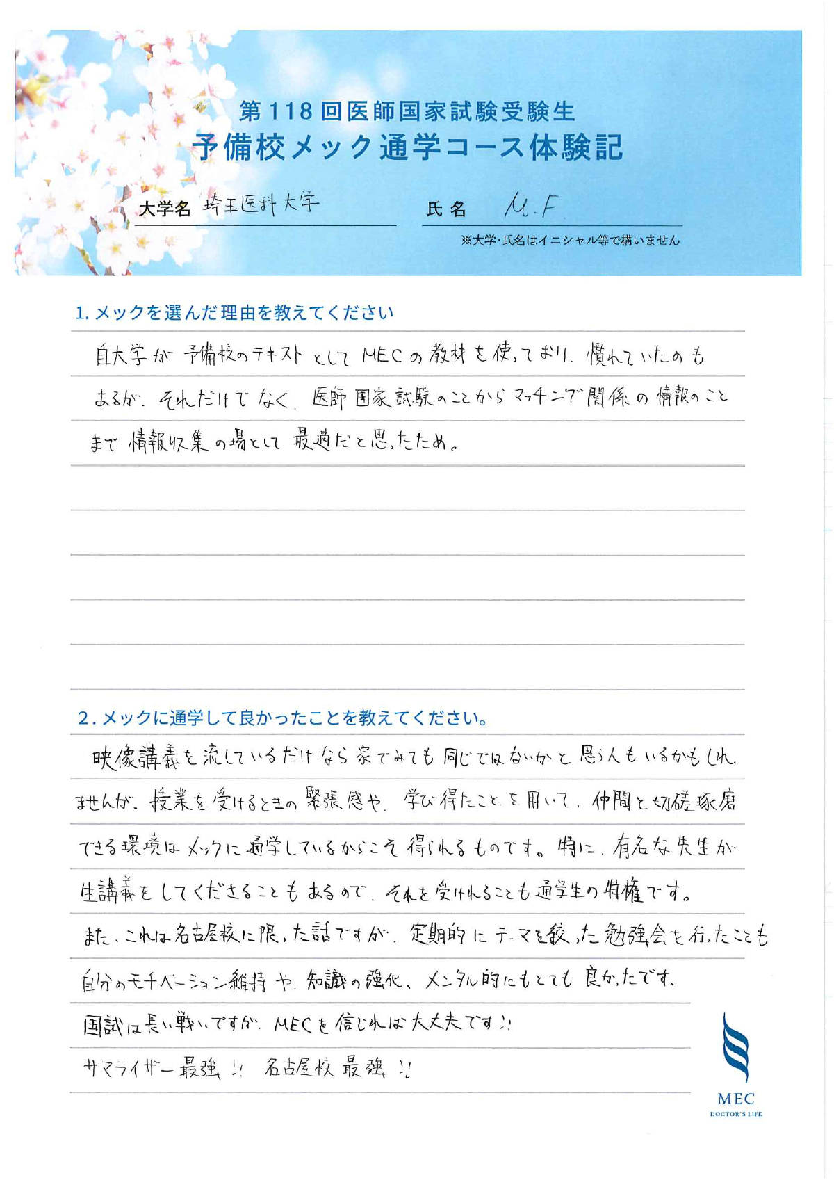 自大学が予備校のテキストとしてMECの教材を使っており、慣れていたのもあるが、それだけでなく、医師国家試験のことからマッチング関係の情報のことまで情報収集の場として最適だと思ったため。