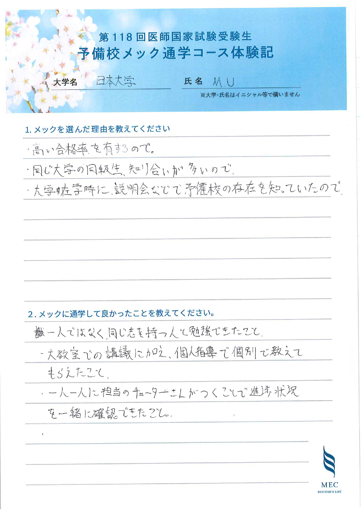 氏名: M.U